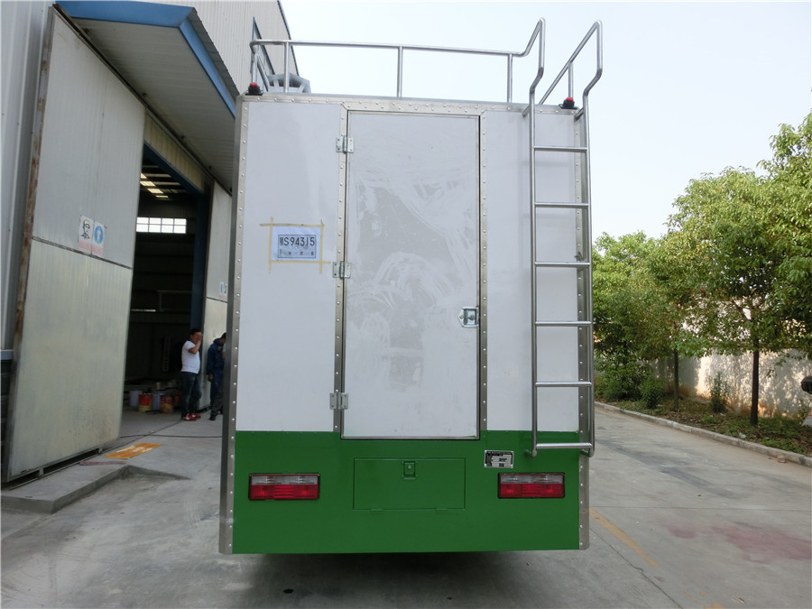 左側右側后側選裝不同結構形式的側翻門、吧臺、舞臺、遮陽板、裝玻璃窗、亦可選裝LED屏舉升或者不舉升,或者選裝百葉窗,爬梯,或者上翻或者側翻門。