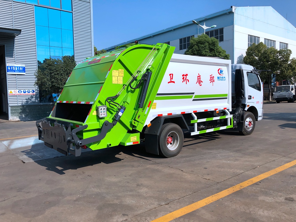 • 壓縮式垃圾車采用機電液一體化技術,借助機電液聯合自動控制系統,通過車廂、填裝器和推鏟等專用裝置,實現垃圾倒入、壓碎或壓扁、強力裝填,把垃圾擠入車廂并壓實和推卸。其主要特點是垃圾收集方式簡便、高效、具有自動反復壓縮以及蠕動壓縮功能,壓縮比高,裝載質量大,作業自動化,動力性、環保性好,整車利用效率高。
